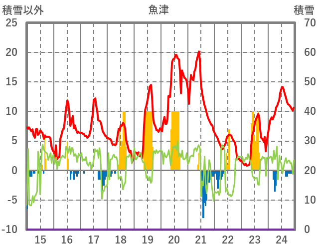 | 日 | 時 | 気温 | 降水 | 風向/風速 | 日照 | 積雪 | 降雪 |