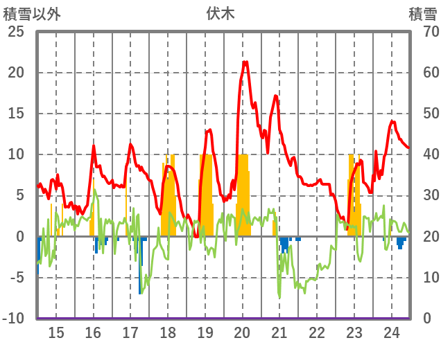 | 日 | 時 | 気温 | 降水 | 風向/風速 | 日照 | 積雪 | 降雪 |