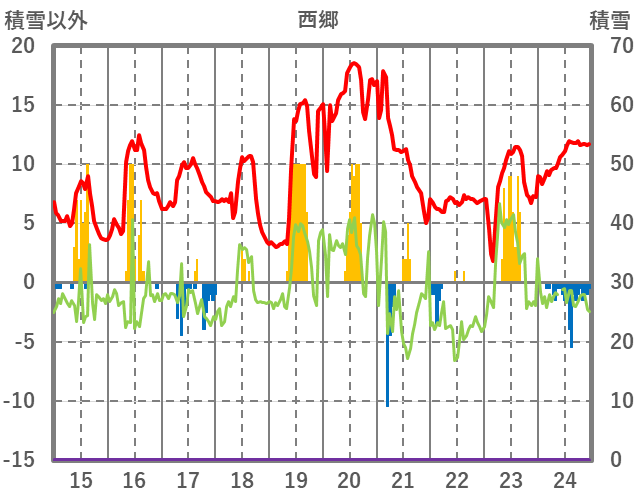 | 日 | 時 | 気温 | 降水 | 風向/風速 | 日照 | 積雪 | 降雪 |