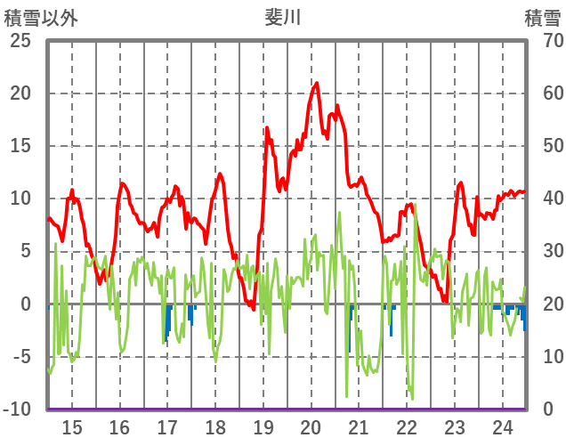 | 日 | 時 | 気温 | 降水 | 風向/風速 | 日照 | 積雪 | 降雪 |