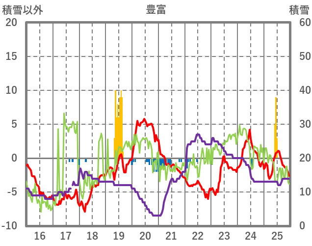 | 日 | 時 | 気温 | 降水 | 風向/風速 | 日照 | 積雪 | 降雪 |