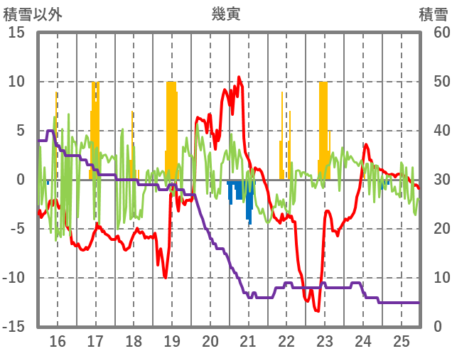 | 日 | 時 | 気温 | 降水 | 風向/風速 | 日照 | 積雪 | 降雪 |