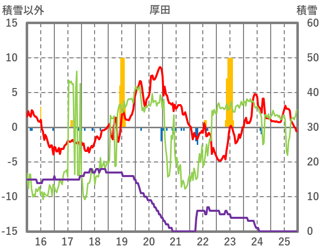 | 日 | 時 | 気温 | 降水 | 風向/風速 | 日照 | 積雪 | 降雪 |