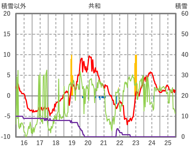| 日 | 時 | 気温 | 降水 | 風向/風速 | 日照 | 積雪 | 降雪 |