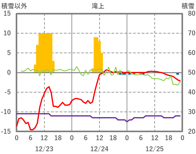 | 日 | 時 | 気温 | 降水 | 風向/風速 | 日照 | 積雪 | 降雪 |