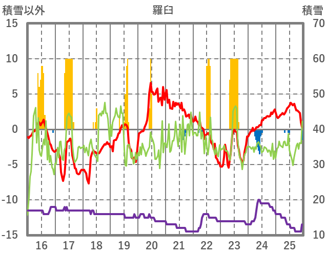 | 日 | 時 | 気温 | 降水 | 風向/風速 | 日照 | 積雪 | 降雪 |
