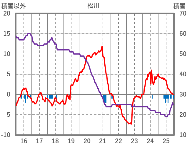 | 日 | 時 | 気温 | 降水 | 風向/風速 | 日照 | 積雪 | 降雪 |