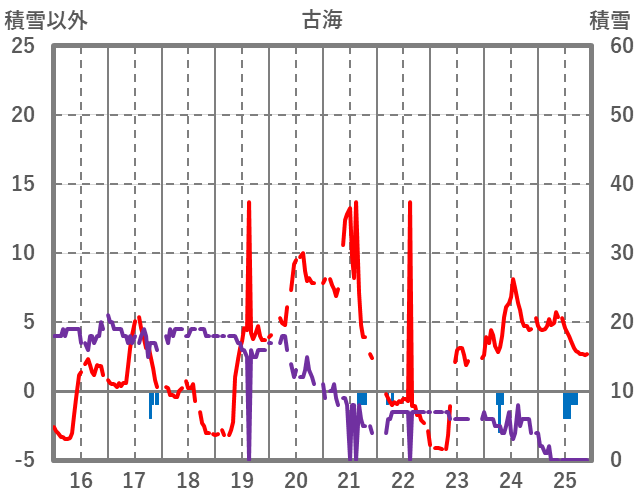 | 日 | 時 | 気温 | 降水 | 風向/風速 | 日照 | 積雪 | 降雪 |
