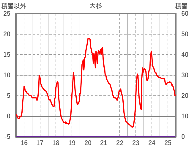 | 日 | 時 | 気温 | 降水 | 風向/風速 | 日照 | 積雪 | 降雪 |