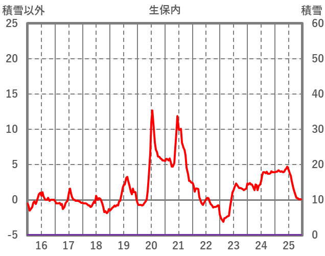 | 日 | 時 | 気温 | 降水 | 風向/風速 | 日照 | 積雪 | 降雪 |