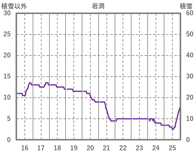 | 日 | 時 | 気温 | 降水 | 風向/風速 | 日照 | 積雪 | 降雪 |