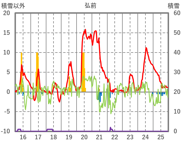 | 日 | 時 | 気温 | 降水 | 風向/風速 | 日照 | 積雪 | 降雪 |