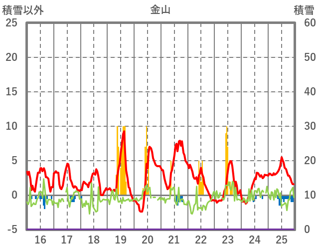 | 日 | 時 | 気温 | 降水 | 風向/風速 | 日照 | 積雪 | 降雪 |