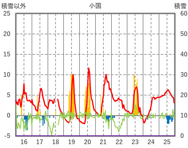 | 日 | 時 | 気温 | 降水 | 風向/風速 | 日照 | 積雪 | 降雪 |