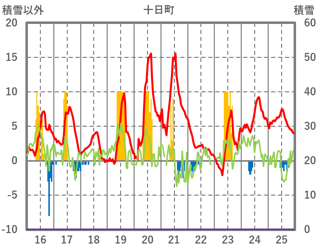| 日 | 時 | 気温 | 降水 | 風向/風速 | 日照 | 積雪 | 降雪 |