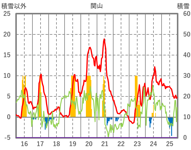 | 日 | 時 | 気温 | 降水 | 風向/風速 | 日照 | 積雪 | 降雪 |
