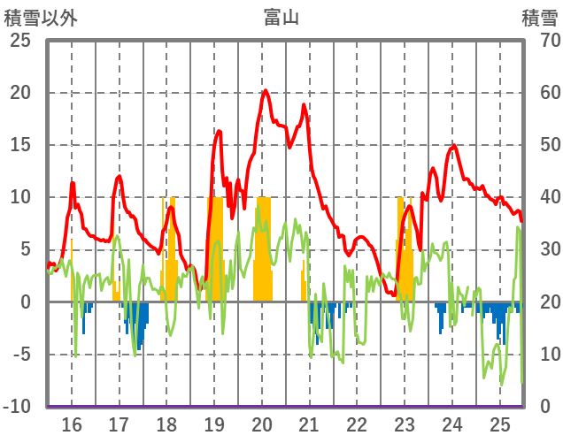| 日 | 時 | 気温 | 降水 | 風向/風速 | 日照 | 積雪 | 降雪 |