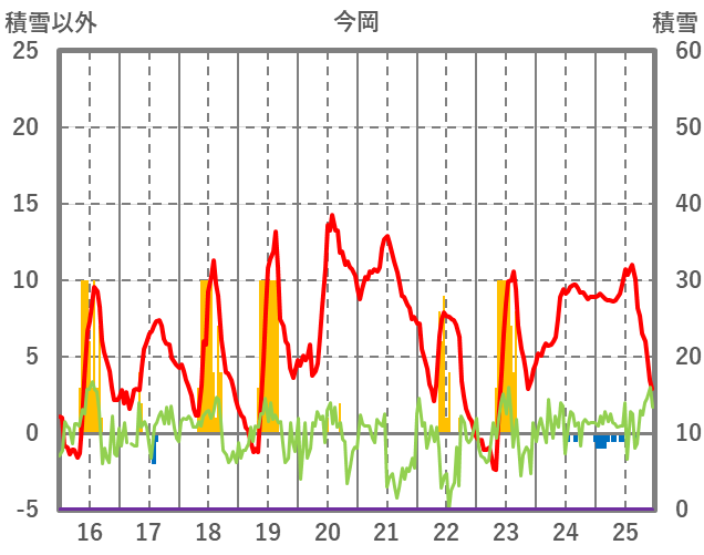 | 日 | 時 | 気温 | 降水 | 風向/風速 | 日照 | 積雪 | 降雪 |
