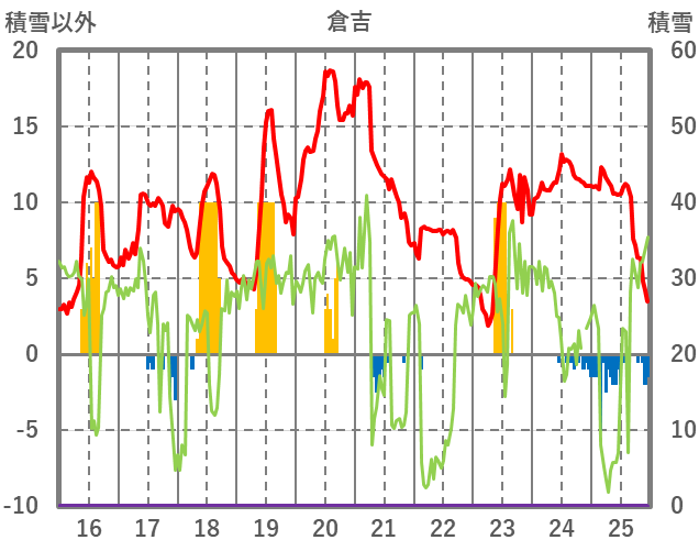 | 日 | 時 | 気温 | 降水 | 風向/風速 | 日照 | 積雪 | 降雪 |