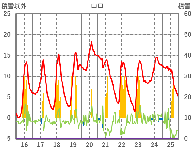 | 日 | 時 | 気温 | 降水 | 風向/風速 | 日照 | 積雪 | 降雪 |