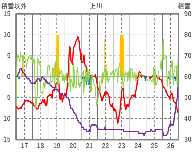 | 日 | 時 | 気温 | 降水 | 風向/風速 | 日照 | 積雪 | 降雪 |