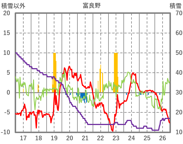 | 日 | 時 | 気温 | 降水 | 風向/風速 | 日照 | 積雪 | 降雪 |