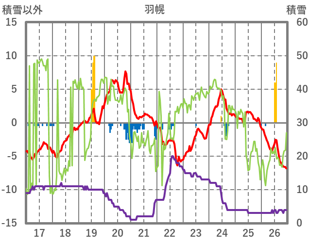 | 日 | 時 | 気温 | 降水 | 風向/風速 | 日照 | 積雪 | 降雪 |