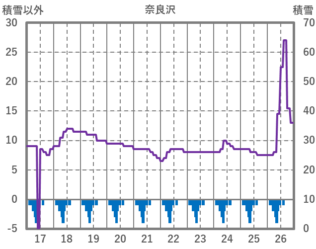 | 日 | 時 | 気温 | 降水 | 風向/風速 | 日照 | 積雪 | 降雪 |