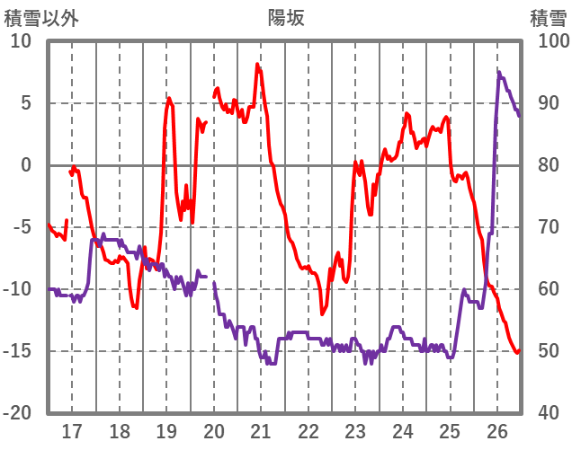 | 日 | 時 | 気温 | 降水 | 風向/風速 | 日照 | 積雪 | 降雪 |