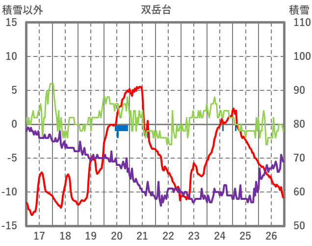| 日 | 時 | 気温 | 降水 | 風向/風速 | 日照 | 積雪 | 降雪 |