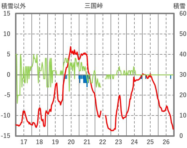 | 日 | 時 | 気温 | 降水 | 風向/風速 | 日照 | 積雪 | 降雪 |