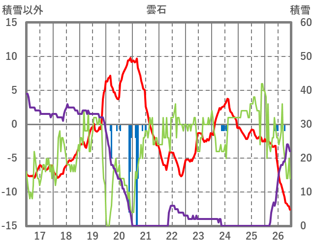 | 日 | 時 | 気温 | 降水 | 風向/風速 | 日照 | 積雪 | 降雪 |