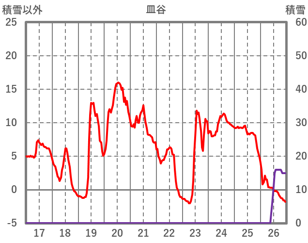 | 日 | 時 | 気温 | 降水 | 風向/風速 | 日照 | 積雪 | 降雪 |
