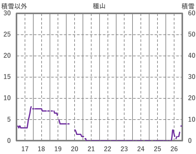 | 日 | 時 | 気温 | 降水 | 風向/風速 | 日照 | 積雪 | 降雪 |