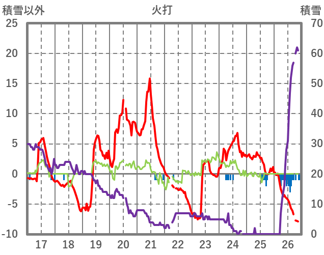 | 日 | 時 | 気温 | 降水 | 風向/風速 | 日照 | 積雪 | 降雪 |