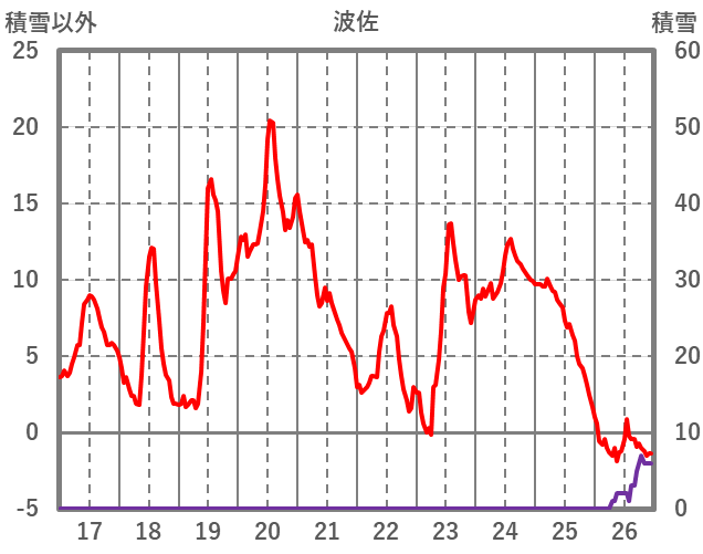 | 日 | 時 | 気温 | 降水 | 風向/風速 | 日照 | 積雪 | 降雪 |