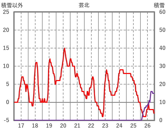 | 日 | 時 | 気温 | 降水 | 風向/風速 | 日照 | 積雪 | 降雪 |