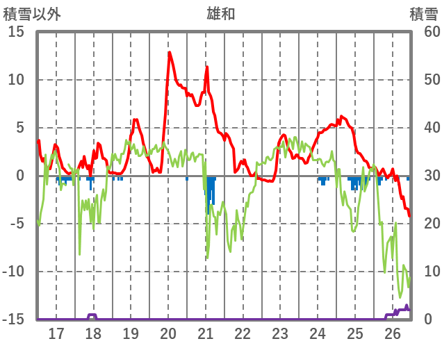 | 日 | 時 | 気温 | 降水 | 風向/風速 | 日照 | 積雪 | 降雪 |