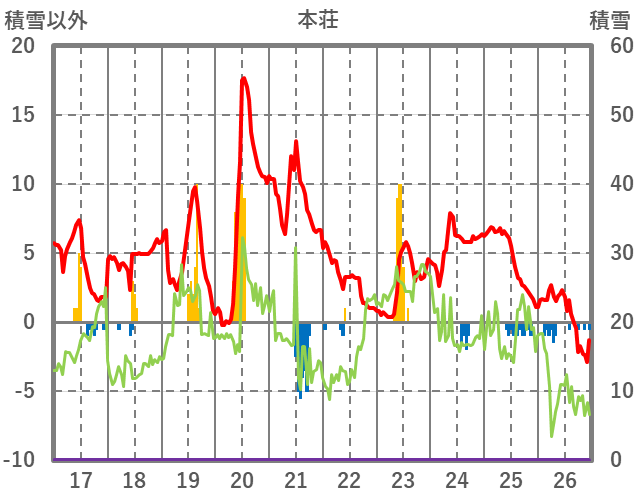 | 日 | 時 | 気温 | 降水 | 風向/風速 | 日照 | 積雪 | 降雪 |