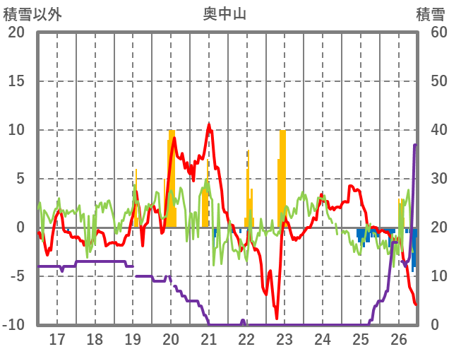 | 日 | 時 | 気温 | 降水 | 風向/風速 | 日照 | 積雪 | 降雪 |