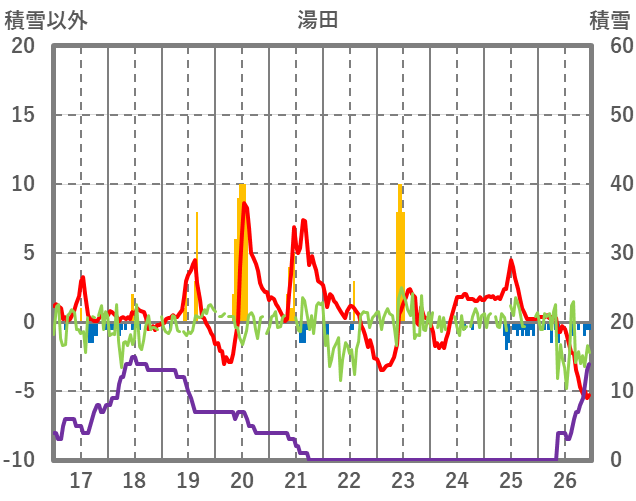 | 日 | 時 | 気温 | 降水 | 風向/風速 | 日照 | 積雪 | 降雪 |