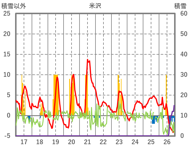 | 日 | 時 | 気温 | 降水 | 風向/風速 | 日照 | 積雪 | 降雪 |