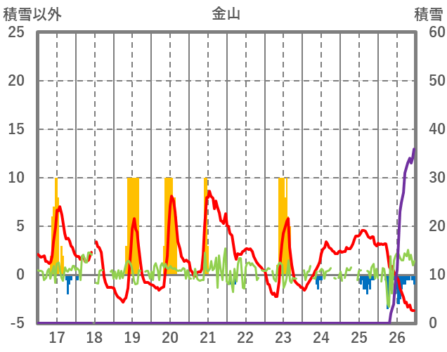 | 日 | 時 | 気温 | 降水 | 風向/風速 | 日照 | 積雪 | 降雪 |
