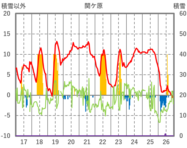 | 日 | 時 | 気温 | 降水 | 風向/風速 | 日照 | 積雪 | 降雪 |