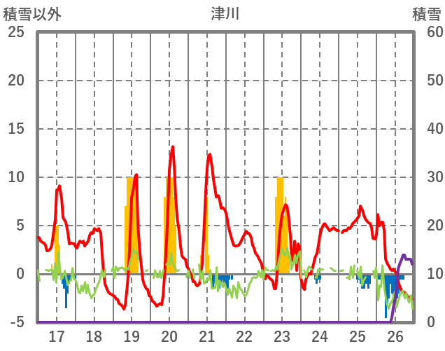 | 日 | 時 | 気温 | 降水 | 風向/風速 | 日照 | 積雪 | 降雪 |