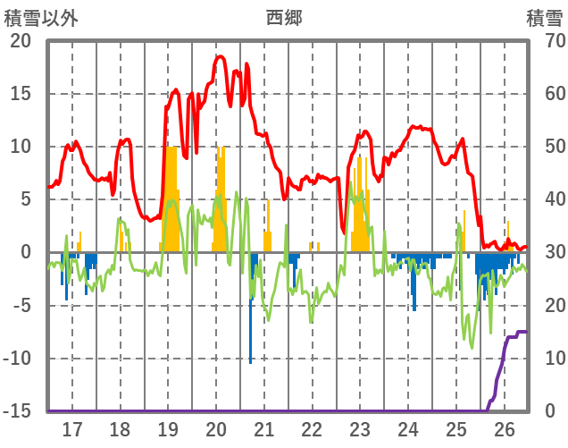 | 日 | 時 | 気温 | 降水 | 風向/風速 | 日照 | 積雪 | 降雪 |