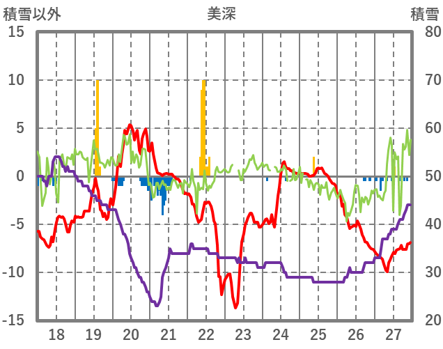 | 日 | 時 | 気温 | 降水 | 風向/風速 | 日照 | 積雪 | 降雪 |
