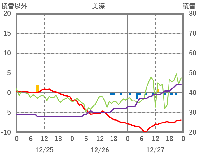 | 日 | 時 | 気温 | 降水 | 風向/風速 | 日照 | 積雪 | 降雪 |