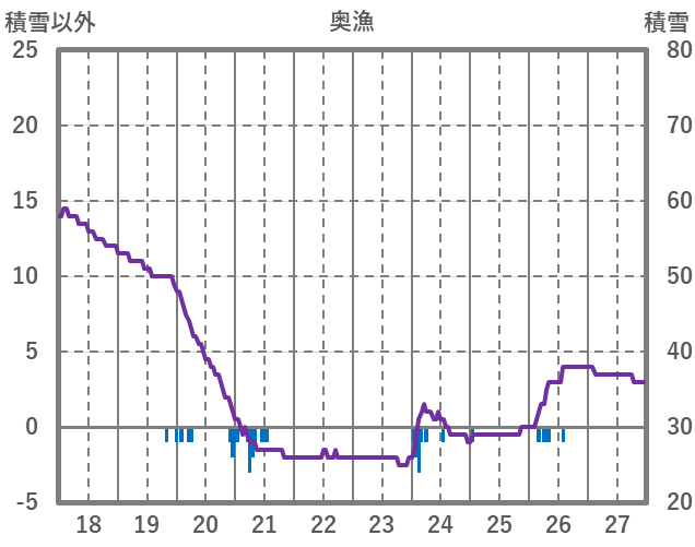 | 日 | 時 | 気温 | 降水 | 風向/風速 | 日照 | 積雪 | 降雪 |