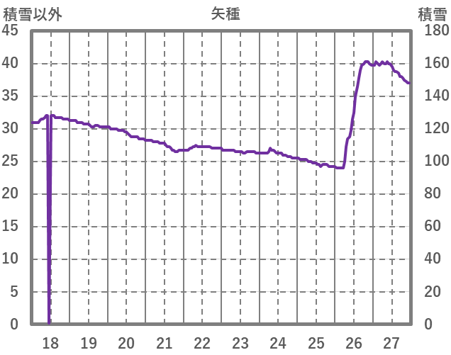 | 日 | 時 | 気温 | 降水 | 風向/風速 | 日照 | 積雪 | 降雪 |
